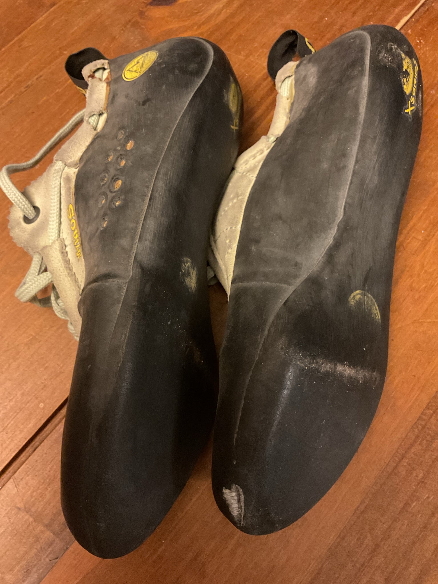 A little beat up, but this classic shoe would work great as an extra pair in your climbing bag.